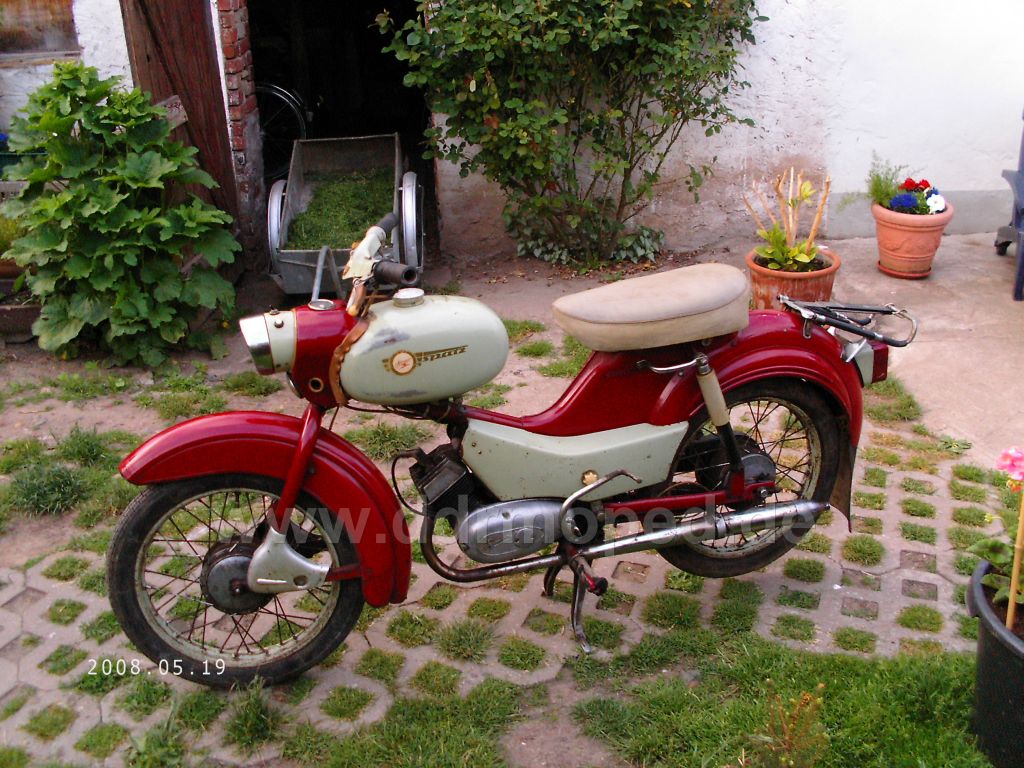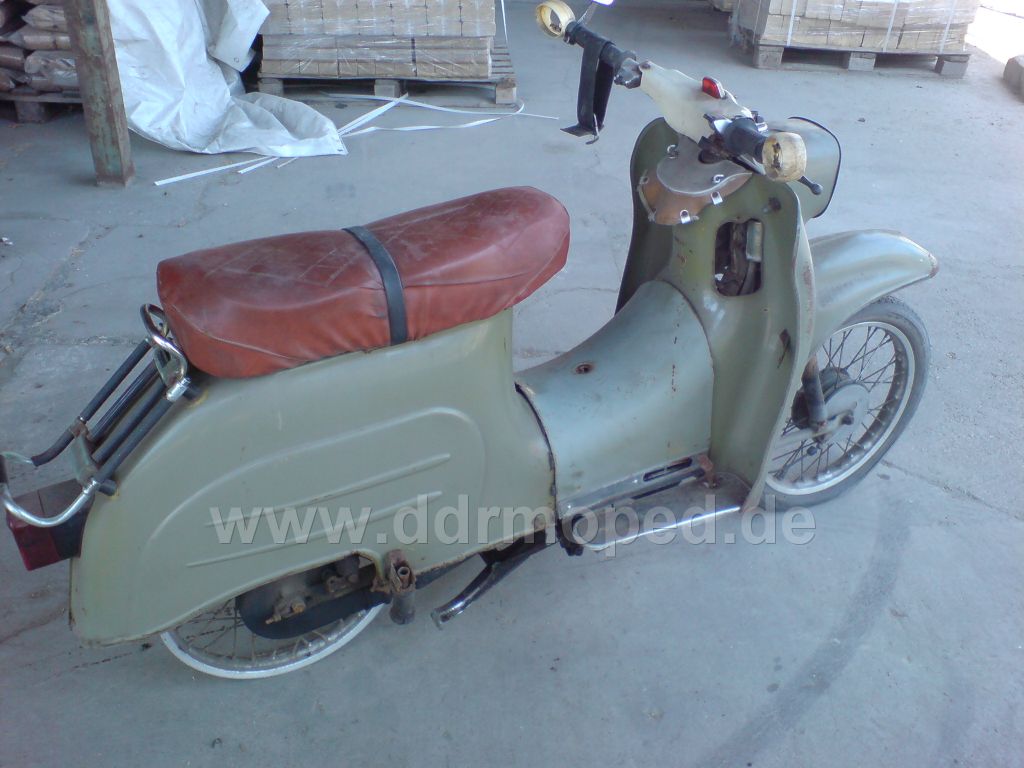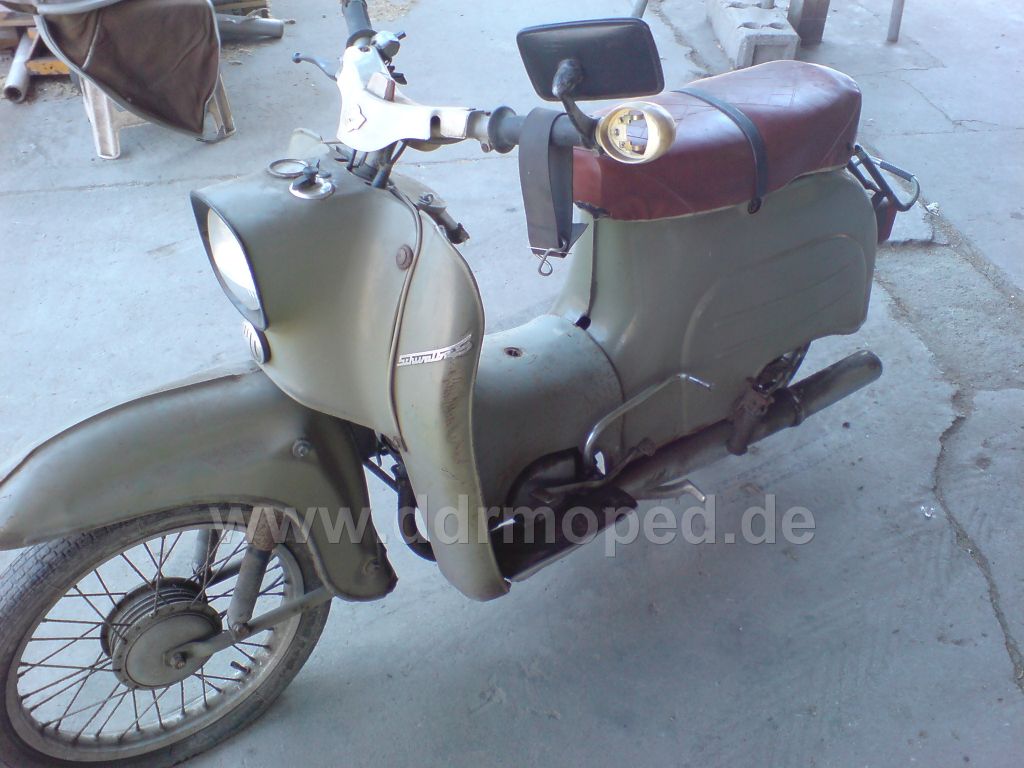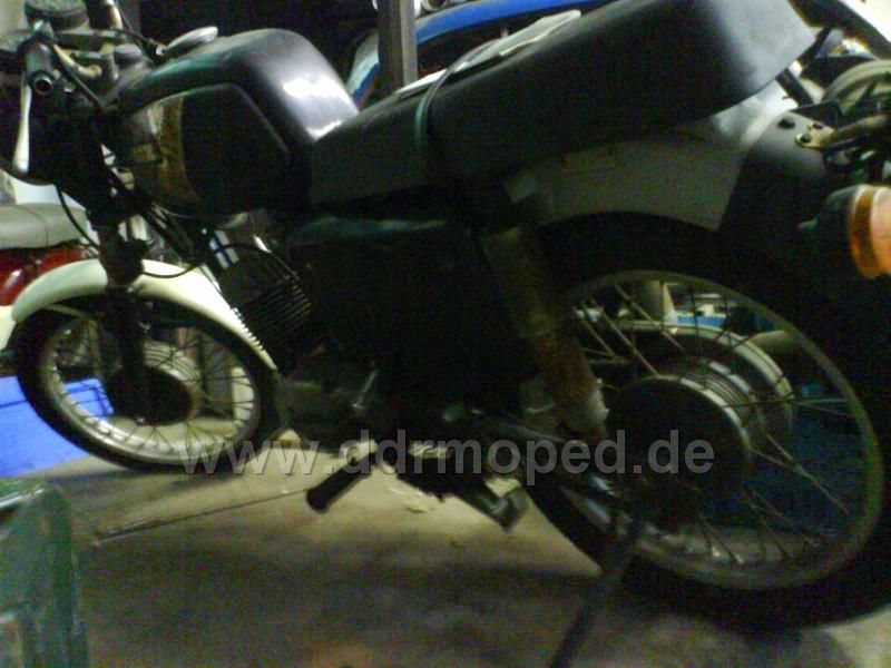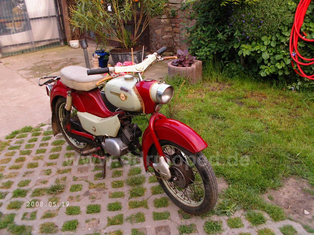Na Christoph was soll ich sagen sieht doch klasse aus das Teil. Anbei ein Bild von meinem Spatz, bekommen habe ich ihn am Samstag morgen. Erst mal muss er pausieren, aber dann gibts neuen Lack, Reifen,Speichen und der Motor bekommt ne Kur Gruß Mathias