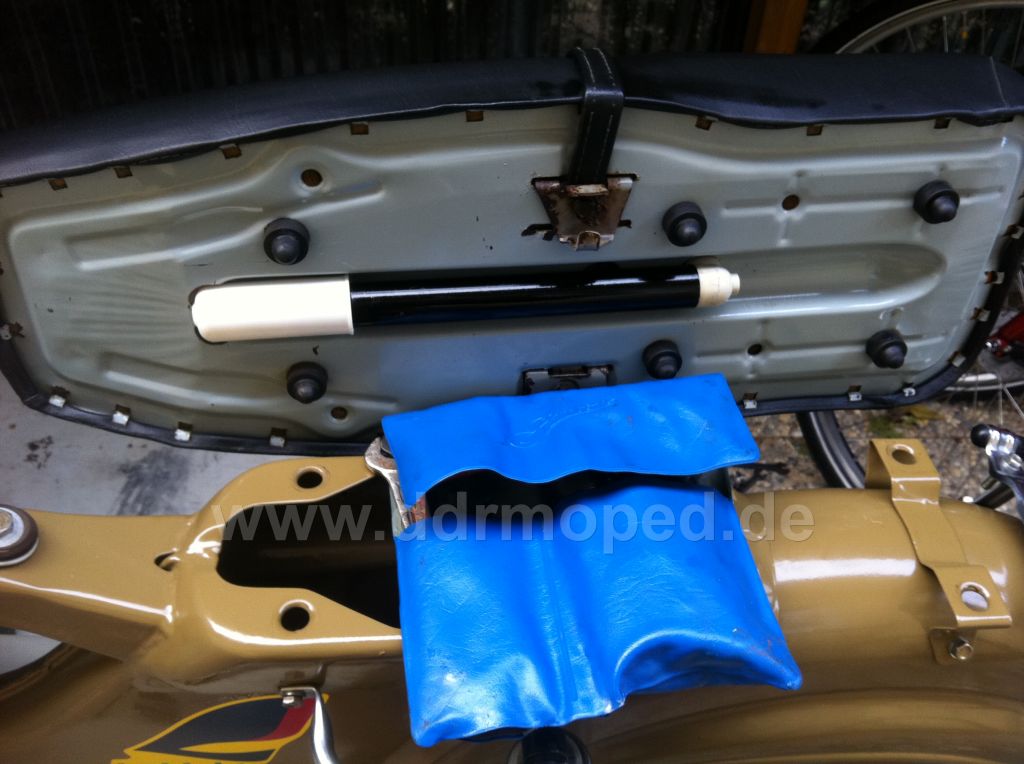 Bezüglich Sitzbankschloß - normalerweise geht der Wechsel ähnlich schnell vonstatten wie der Wassersackwechsel vom Benzinhahn - wo hakts genau, Konrad?!