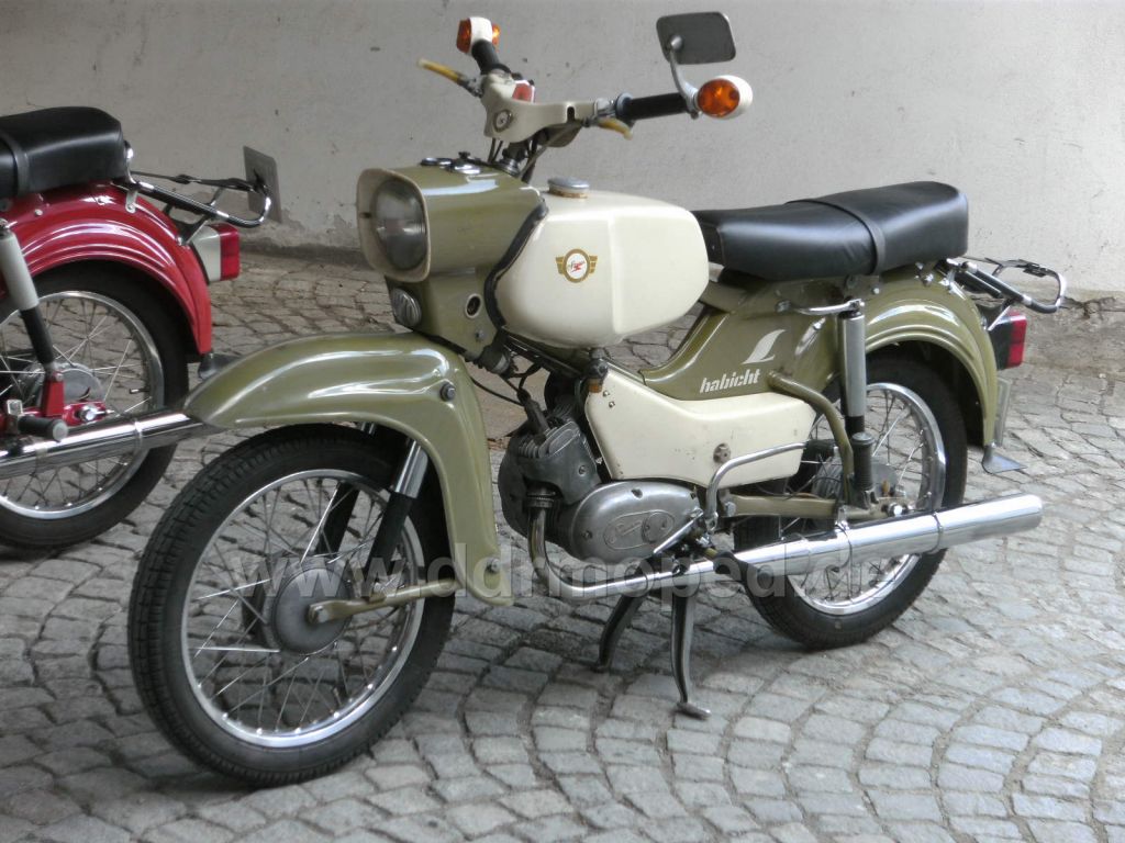 Hallo Konrad, Der Habicht auf dem Foto hier ist ein früher ORIGINALER Habicht von meinem Kumpel. Ich selbst habe auch noch einen 72er Habicht in gutem Originalzustand. Fotos folgen demnächst, wenn er fertig ist. Und es gibt sehr wohl noch eine gewisse Anzahl von gut erhaltenen bis neuwertigen Habichten. Dein Habicht wurde komplett neu lackiert, also somit auch das Rücklichtgehäuse. Es ist zu 100% nicht original! Dieses war wie ich mittlerweile selbst feststellen musste bis an den Habichten in den Prospekten in tundragrau. Mir persönlich gefällt es aber auch besser, wenn die Rücklichtkappe alabaster ist. Wasserabziehbilder wie beim Original gibt es aber zu kaufen, wenn du sie noch tauschen willst. Hebelüberzüge gibt es z.b. HIER recht günstig. Noch was zu deinen Fragen: | QUOTE | | Ein Sozius hat gemeint, dass er hinten weggrutschen würde. Gab es wie beim S50/51 eine Art Bügel zum Festhalten (am Gepäckträger) für den Sozius/Sozia? |