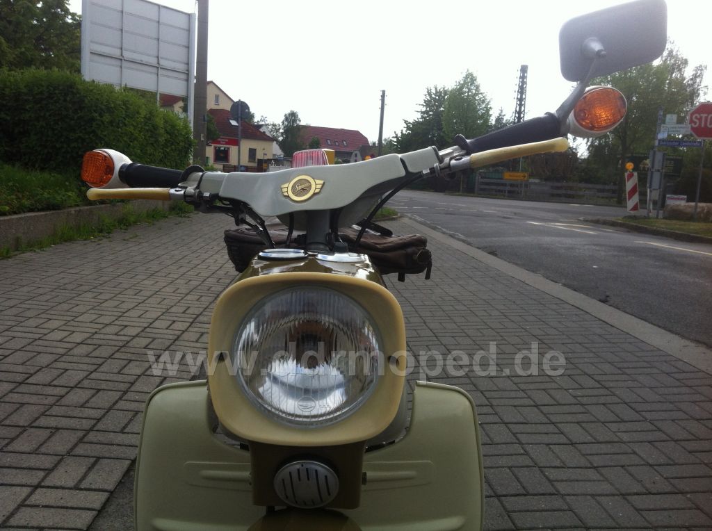 Einen schicken, originalen elfenbeinfarbigen DDR-Blendrahmen vorne macht die Vogelschnauze auch gleich gefälliger