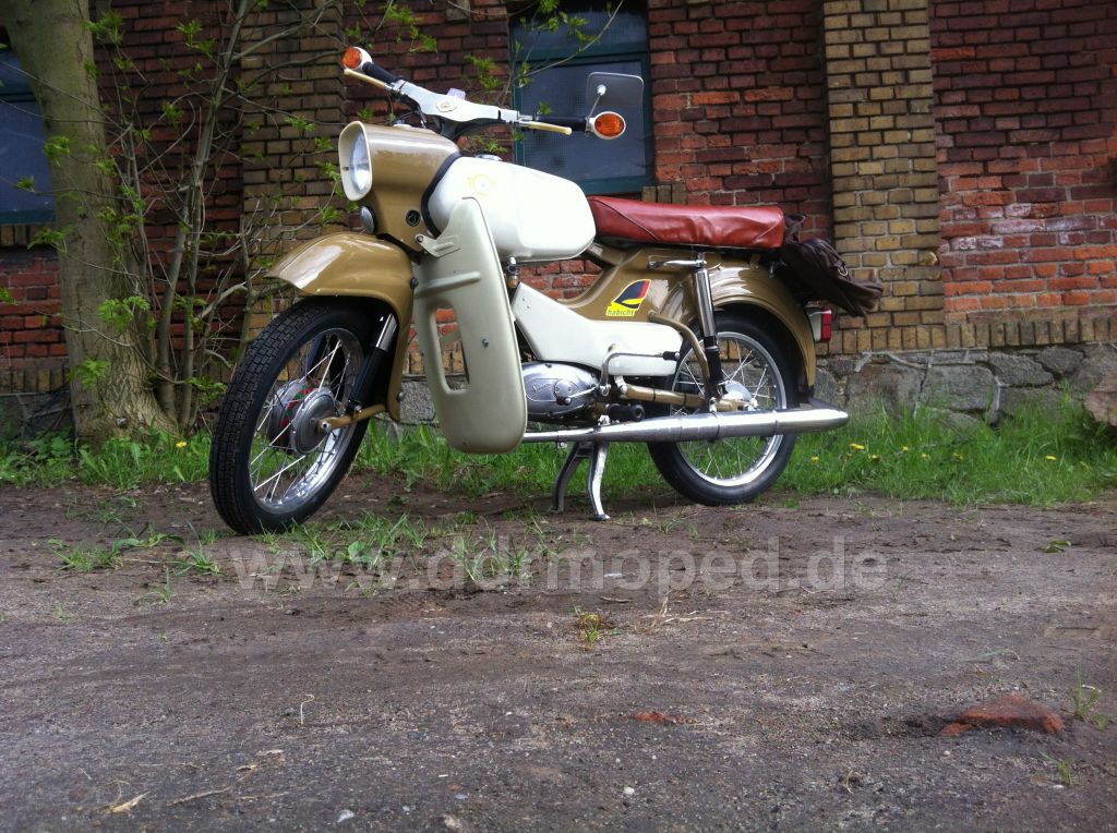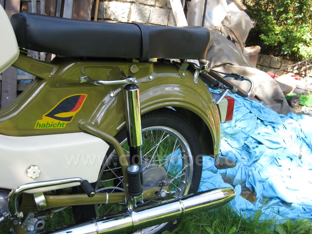 Habe wie gesagt einen Habicht von Oktober 73. Ein anderer gebrauchter DDR-Auspuff mit stumpfem Endstück ist bereits auf dem Postweg zu mir. Außerdem kommen an den Vogel demnächst noch Seitengepäckträger. Für dessen Befestgung muss erstmal ein längerer Bolzen für die Verbindung zwischen den beiden Stoßdämpfern gedreht werden. Als Fahrwerksteil soll da nur besonders robustes Material benutzt werden und nichts aus dem Baumarkt.