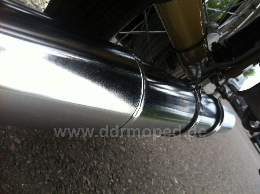 So ab heute hat der Habicht auch einen originalen DDR-Auspuff! Der Klang ist voller und dumpfer und nicht mehr so blechern. Der Anzug ist etwas besser und die Endgeschwindigkeit ist nun locker bei 67 kmh  Mit Iphone kann man keine Fotos hochladen,.,