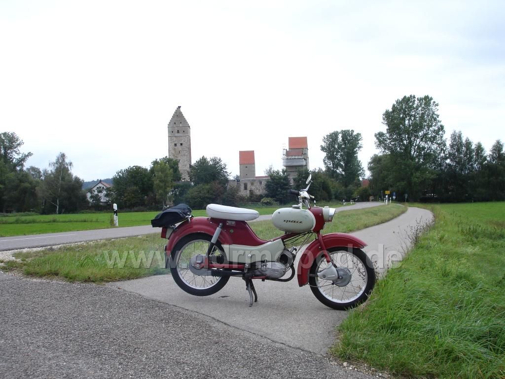 Rückzu wurde die Technik nicht geschont und so wurde die Strecke von 50km mit Fotopausen in nicht ganz einer Stunde gemeistert Zu sehen ist übrigens die Burg in Nassenfels und ein Spatz , bei dem der Motor noch läuft und der aufgrund des Gemischs etwas nebelt Jedenfalls hatte jener nach ca 2 min Lauf auf Gefälleuntergrund beim losfahren starke Blähungen, soll heißen er schoß die nächsten 500m bei vollast aus dem Auspuff, also gemach weitergefahren und abkühlen lassen.