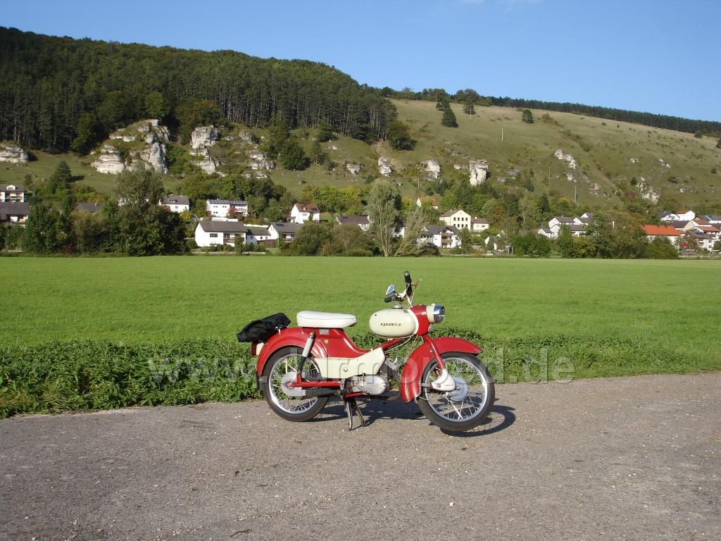 Es ging heut mal wieder Richtung Dollnstein, wo mich die allererste Ausfahrt schon hinverschlug, jedoch einst mit temporären Problemchen. Heut lief alles glatt und selbst die damals vermeindlichen "langen Würger" wurden heut glattgebügelt Ich kam nie in Bedrängniss in den ersten wechseln zu müssen, was mich erstaunt, denn beim ersten mal gabs Passagen, wo ich dachte ich müsse raufschieben Da sieht man erstmal was ein sauber eingestellter Vergaser und ein gut eingefahrener Motor alles zu leisten im Stande sind.