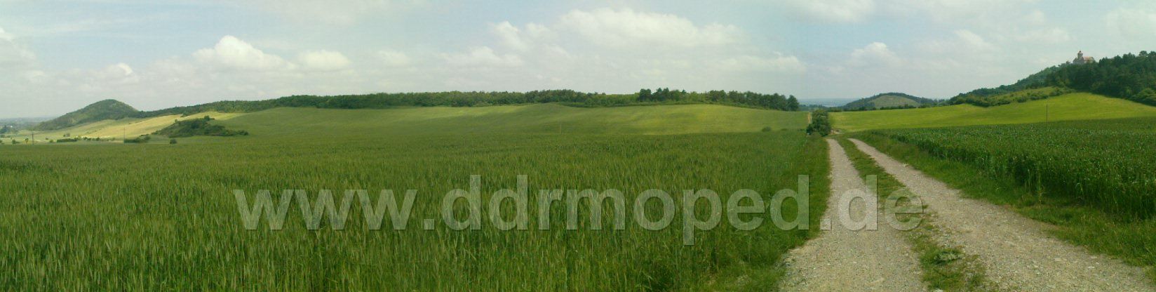 Bild 1: Das erste Bild zeigt ein Panorama der wunderfollen Landschaft, wobei ihr am rechten Bildrand, die Mühlburg bei Mühlberg seht.