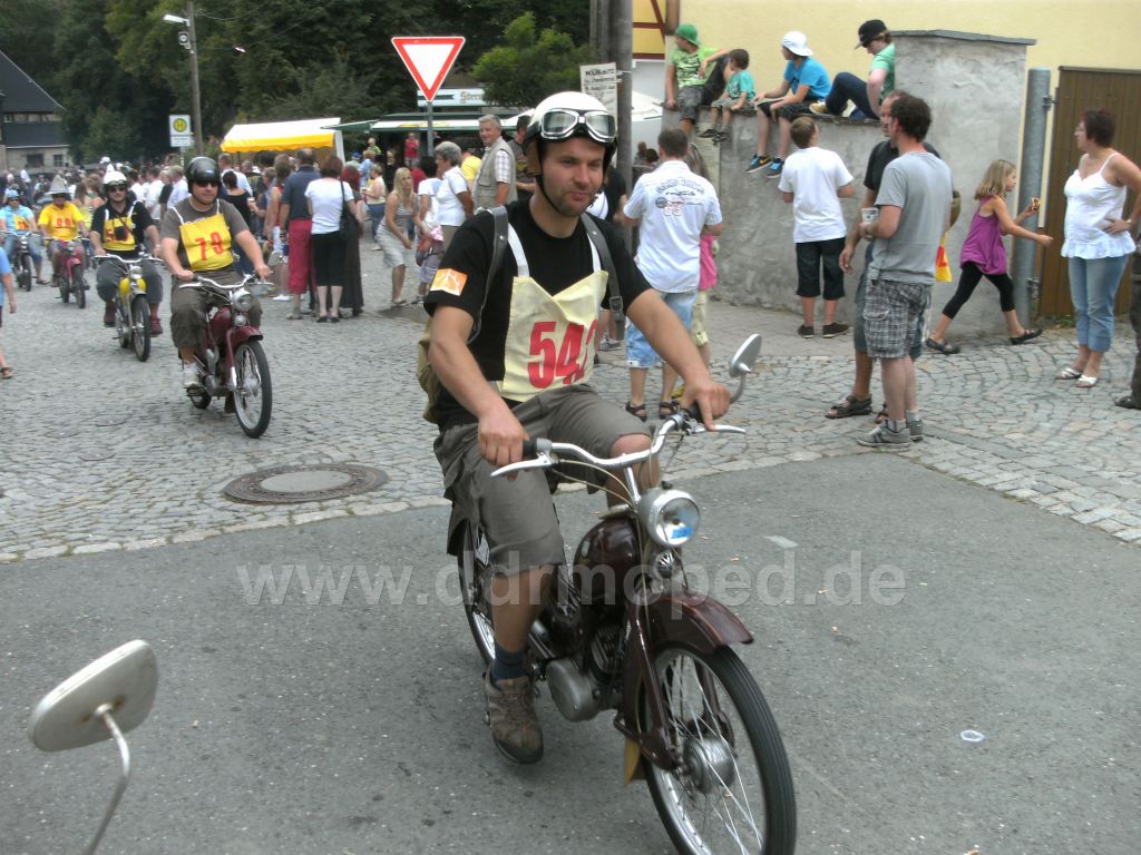Und dann kam auf einmal mit tatütata und Blaulicht ein originales DDR Polizeimotorrad im Ziel eingefahren.