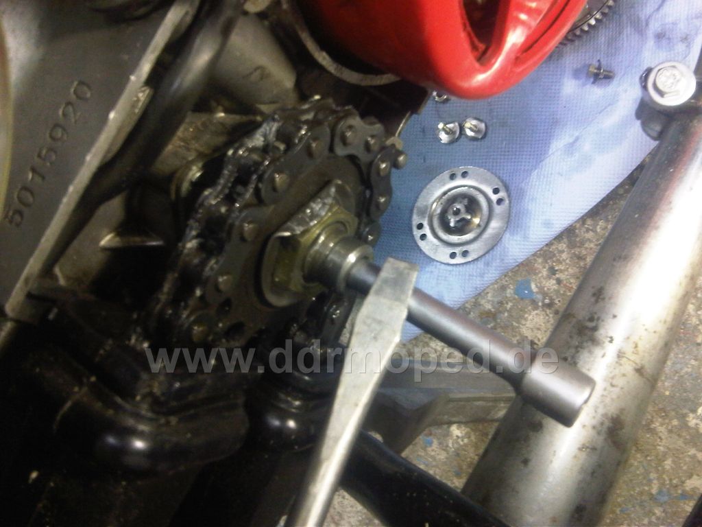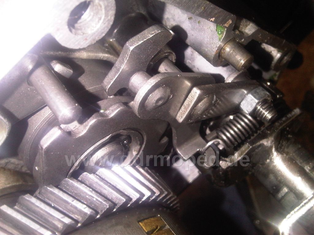 Wenn man in den zweiten Gang wollte,war das unmöglich. Ich habe schon bis zum Maximum hochgedrückt, jedoch sprang er einfach nicht in den zweiten, dritten vierten Gang. Aber erster und Leerlauf ging. Es sah so aus als ob die Schaltnut nur noch en paar mm die Walze hochdrücken müsste!