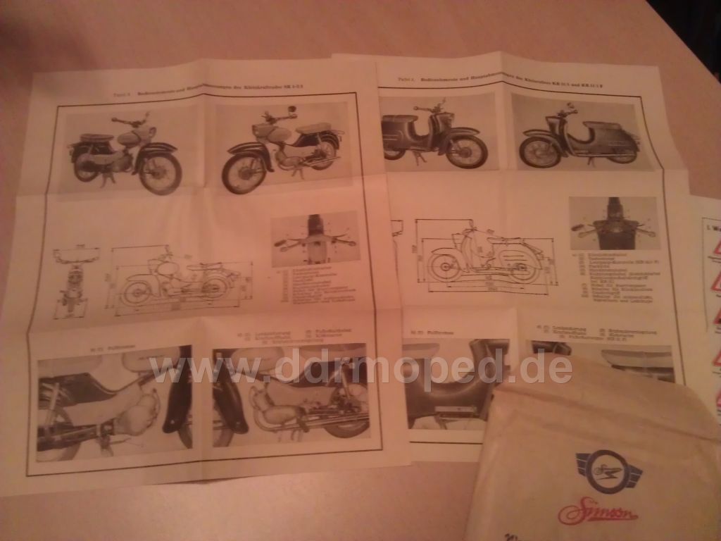 Verkehrszeichen und Verkehrsleiteinrichtungen, Garantieheft mit Vertragswerkstättenverzeichnis, Betriebsanleitung und Simson-Beutel für notwendige Unterlagen