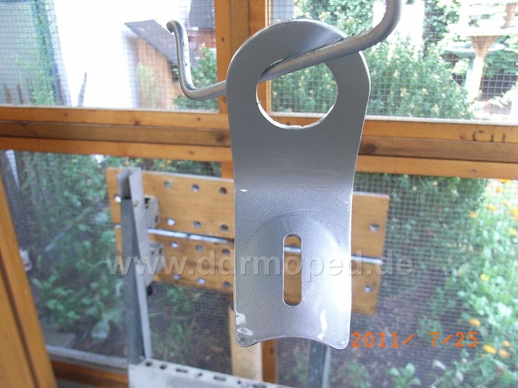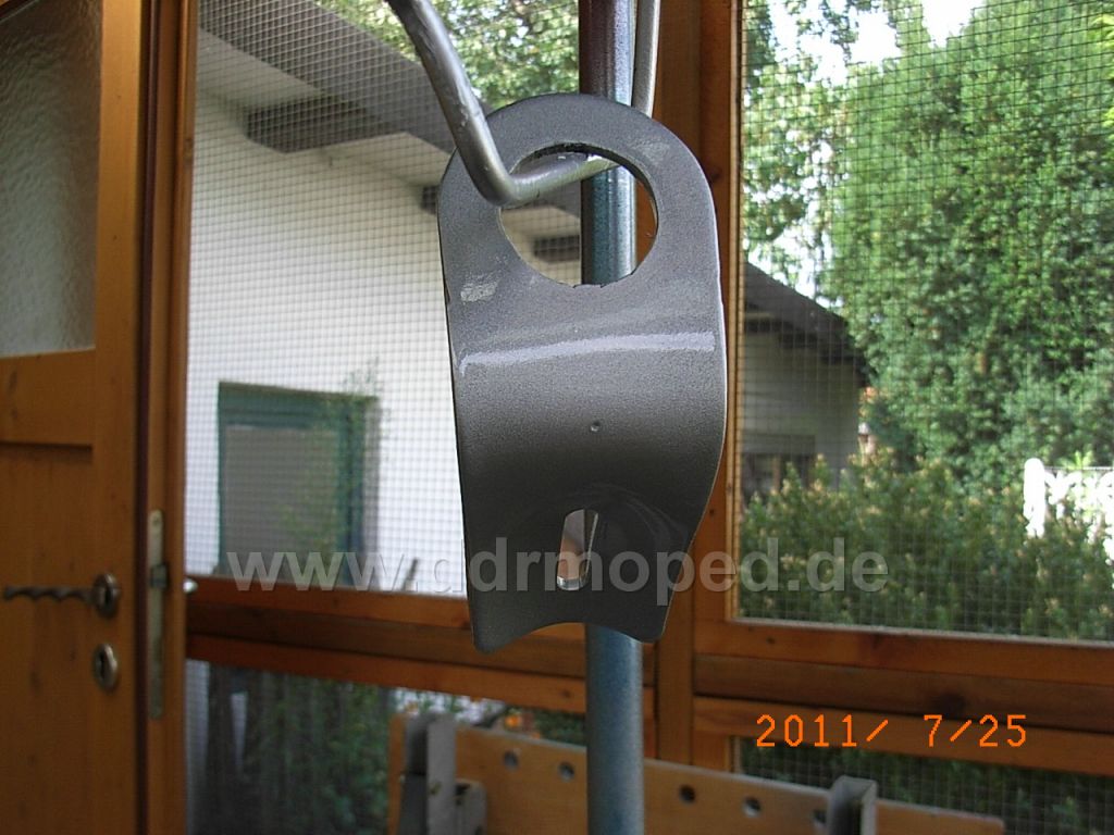 Ich will dir ja keine Angst machen, aber du wirst ständig Probleme mit sich lockernder Kontermutter und daraus resultierenden Masseproblemen, haben. An deinem Lampenhalter fehlt die Nase, die das Teil gegen Verdrehen sichert. Ich würde dir empfehlen, gehe zum Schweißer deines Vertrauens lass die Nase anschweißen, arbeite sie nach und lackiere nochmal neu. Ich kenn das Problem aus Erfahrung, bei mir ist die Nase zwar noch vorhanden, hat aber schon ordentlich Spiel.