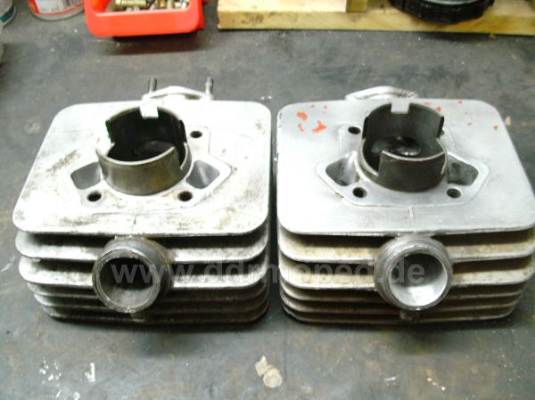 Nächstes,2 Zylinder S70 DDR-Produktion.Einmal original und einmal bearbeitet(der rechte)Gewinde und Dichtflächen ok.Laufbahn keine Macken.Müssen geschliffen werden.Preis Originale 40 € ,der andere 65 € VHB.
