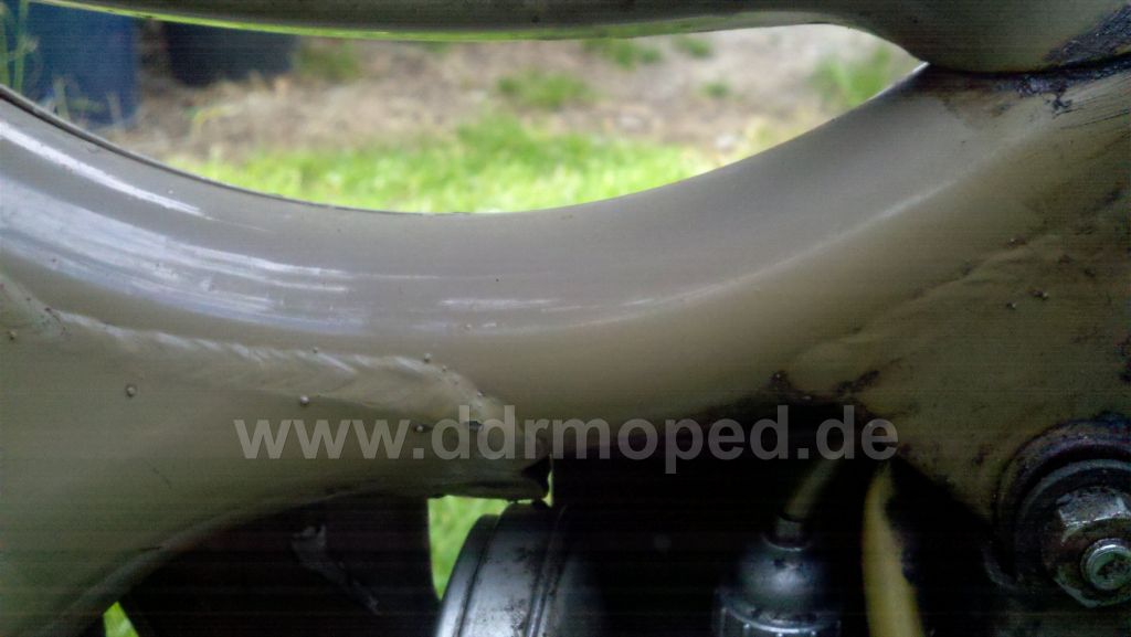 Angefngen habe ich mit dem Heckschutzblech, einfach mal nen Lappen mit Verdünnung genommen und mal drübergewischt.