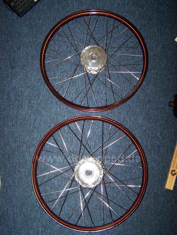 Und heute habe ich etwas früher Feierabend gemacht, und habe die zwei Stahl-felgen mit nach hause genommen und eingespeicht. Erste Felge dauert 2 Stunden und hatte 3 Anläufe bevor es was wurde. Zweite Felge war nach 15 Min. eingespeicht. Erkennt einer einen Fehler? wenn ja bitte ich um Hinweis. Ansonsten gehen sie morgen zum Zentrieren. OK, Ein Fehler ist, dass die Hintere Felge keine Renak ist. Tut mir ja selber in der Seele weh, aber für die Nabe die dabei war ist einfach kein 12'er Nieten-Ritzel zu bekommen. Wenn einer noch ein brauchbares hat, bitte melden. Ich hätte noch eine Felge die ich machen kann.