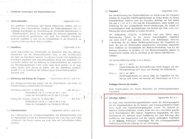 Tante Edit hat noch was gefunden. Also die Schwinge mit doppelter Aufnahme gab es von 68-77, dann hat man den Rahmen mit einer weiteren Aufnahme für die hydraulischen Dämpfer ausgestattet und hat dann eine Einheitsschwinge eingeführt.