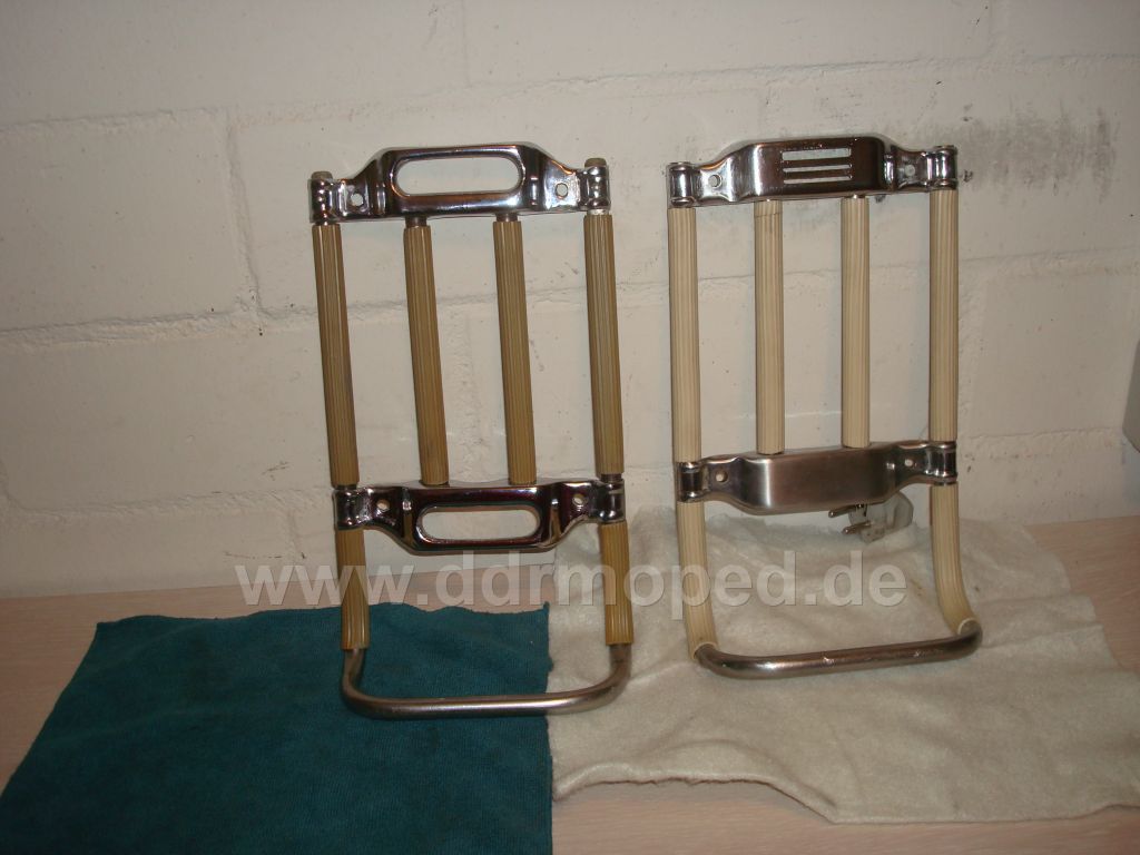 Ja Alex,ich weiß das es der linke Gepäckträger ist,es war erst der rechte verbaut, siehe Seite 3.Dann wurde ich aber darauf aufmerksam gemacht,daß der Gepäckträger der falsche ist,deshalb habe ich mich um einen neuen bemüht und es hat geklappt. Da ich nur eine Schwalbe habe,werde ich den anderen verkaufen oder gegen etwas anderes,was mir noch fehlt,tauschen. Jetzt fehlt mir nur der beige Gummi dazu.Wo bekommt man den her. das fragt der OlliE