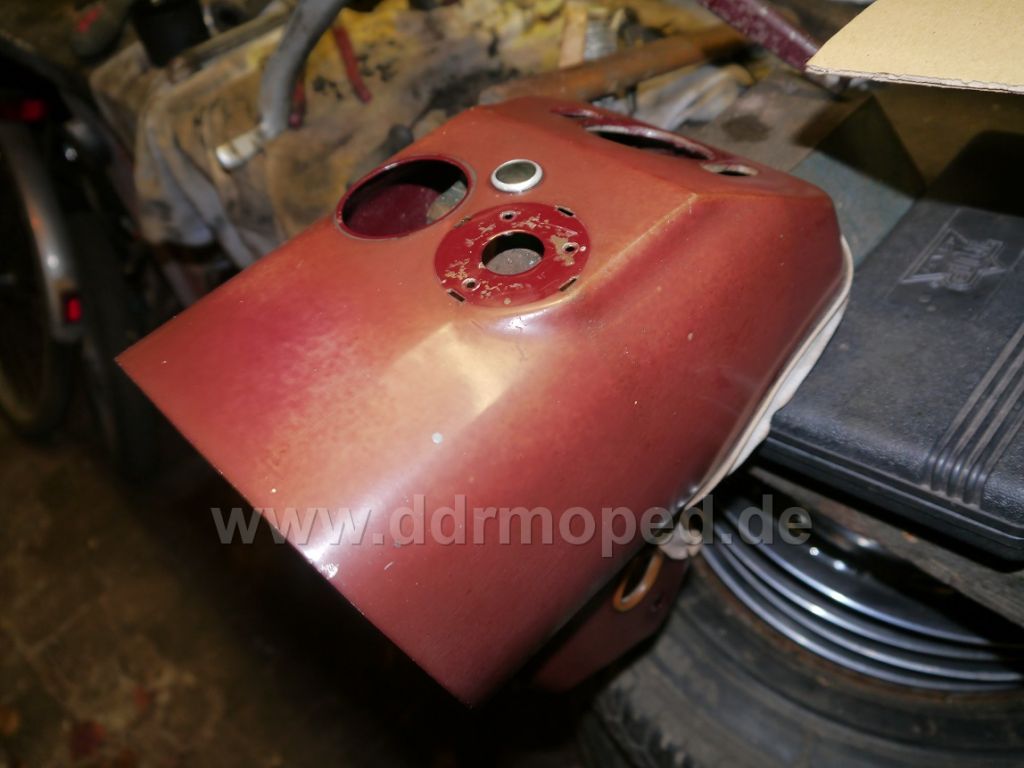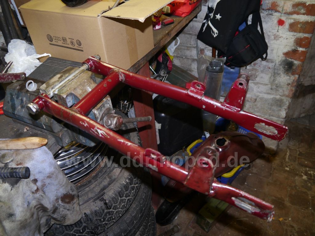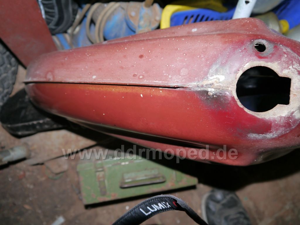 Sooo, das Polytrol ist eingetroffen, und ich hab mal n bisschen probiert! Also ich muss sagen, echt top, das Zeug! Ich hab es erst mit so nem weichen, weißen Polierlappen aufgetragen und etwas eingerieben. Danach ----> Raucherpause Und dann mit nem andern Polierlappen den Überschuss wieder abgerieben. Von diesen Polierlappen bleiben aber immer so kleine Fasern an den Lackabplatzern hängen, darum habe ich später n Mikrofasertuch genommen. Ging besser. Jetzt lasse ich Bilder sprechen. Die gereinigte und entfettete Schwinge vorher.