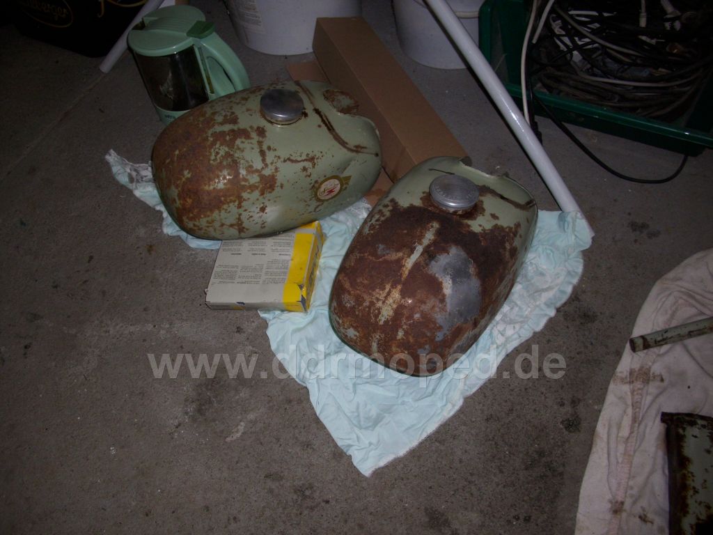 So heute habe ich mal meine Benzinhahnsammlung gesäubert und mal bisschen sortiert. An den beiden Staren waren die "großen" Benzinhähne verbaut, die ja glaube ich aber nicht original waren. Da ich aber keine anderen Benzinhähne da habe und ich auch nicht extra welche kaufen möchte, werde ich diese nehmen. Nun habe ich allerdings noch eine Frage und zwar sind die 2 linken Benzinhähne (Grundmodelle) fast identisch. Es steht irgendwas mit 410 drauf und nen Logo ist darüber eingeprägt. Auf der anderen Seite stehen verschiedene Zahlen, auf dem einem auch eine römische 2. Auf den anderen rechten Benzinhahn steht allerdings EHR als Logo drauf. Wollte nun fragen, ob es egal ist, welchen Benzinhahn ich verbaue, oder ob ich da irgendwelche besonderen Dinger habe, die vielleicht zu schade sind zum drann bauen Brauche auch nicht unbedingt 2 Benzinhähne, weil ich habe noch ein Nachbauteil da, dass ich verwenden könnte Wie sieht es eigentlich mit dem Linken Plastikstutzen für den benzinschlauch aus, ist der so oder hat den jemand rumgebogen?