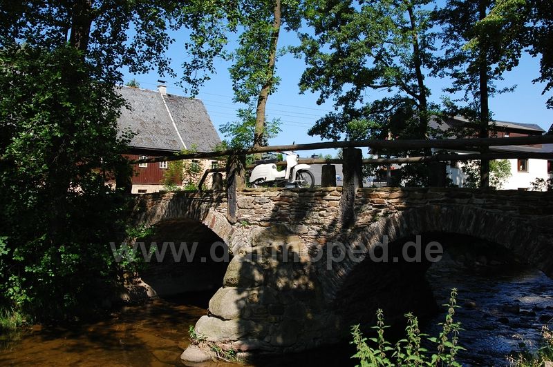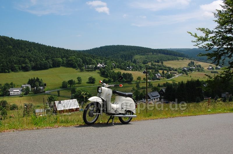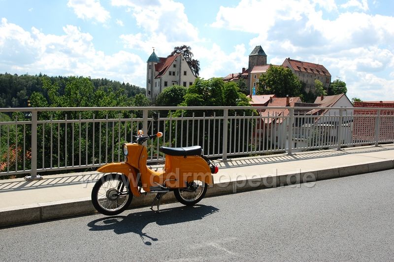 5.19 Uhr schien mir die Sonne so schön ins Gesicht, dass ich raus aus den Federn bin und ab aufs Moped. (Ich konnte vor Aufregung nicht mehr schlafen!) Nach Vorbereitungen und tanken ging es 6.20 Uhr vom Hof. Eine geniale Fahrt über Pirna, Hohnstein, Neustadt, Hohwald, Weifa, Crosta, Cunewalde... bis ans Ziel...