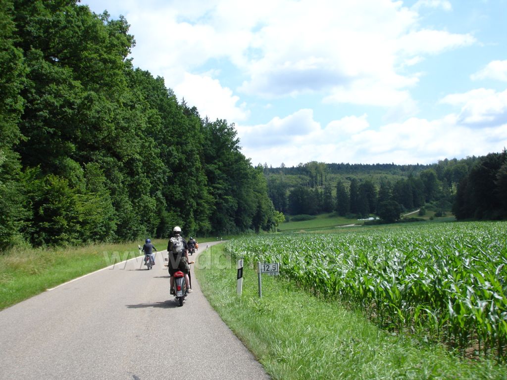 Seine Freundin hier, (mit dem orangenen Roller) perlte auch ab und das Gefährt quittierte den Dienst. Aber er flog ihr zuhilfe oder war der Hang doch so steil!!!