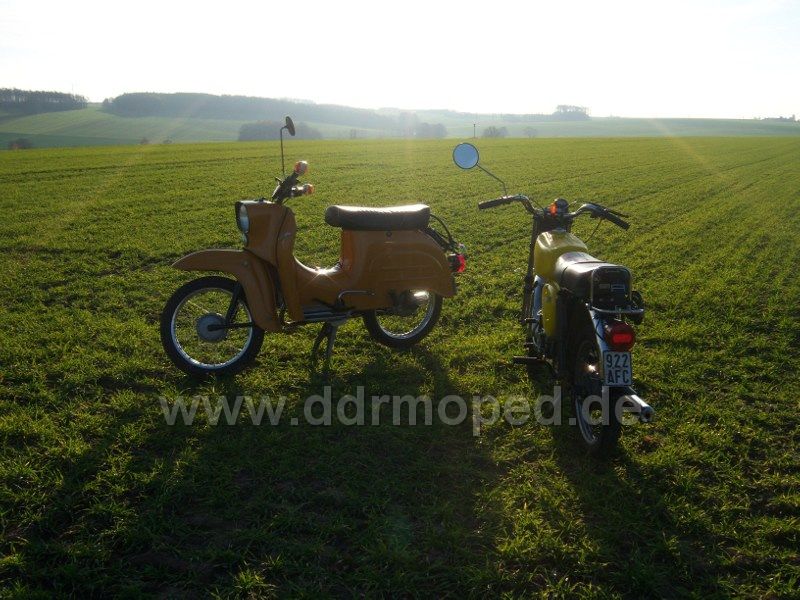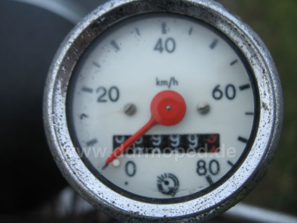 Sämtliche Umbörtelungen am Panzer und Schutzblech sowie Batteriefachdeckel sind weggecleant. Zündschloss nicht mehr vorhanden. Leerlaufleuchte nicht vorhanden, 100er Tacho drin, und 50 fährt sie nur. Halterung für Hauptständer weggeflext, das Gas rutscht gerne vom Lenker und aus geht sie auch oft...