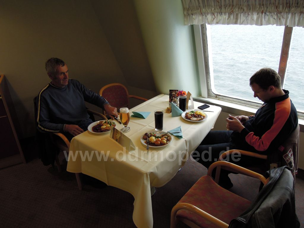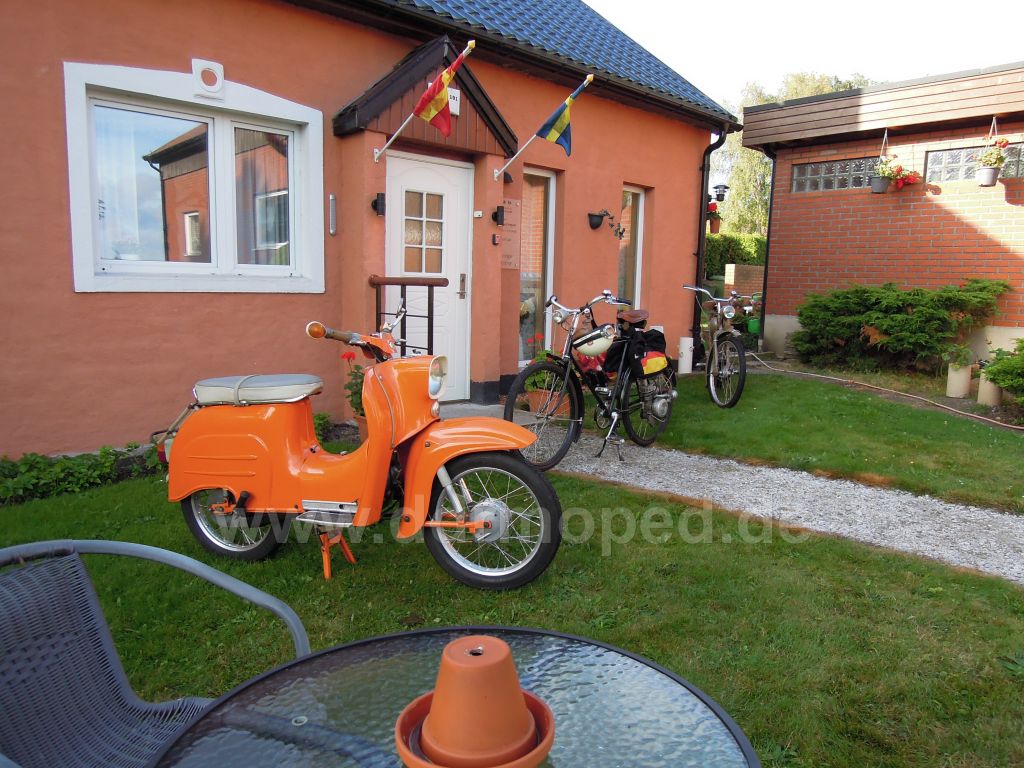 In Trelleborg angekommen, wurden wir mit leichtem Regen begrüßt. Wir hüllten uns in unsere Regenkombis und fuhren zu unserer Unterkunft. Dort hat der MAW Ewald erstmal eine Inventur seiner Bierreserven gemacht und diese anschließend auf dem Möbiliar zur Schau gestellt.