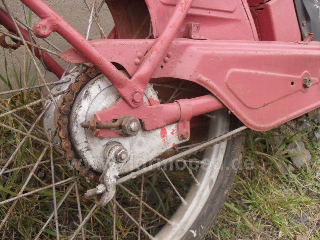 Wie sich vielleicht jemand erinnert, suchte ich vor einer Weile einen restaurationsbedürftigen SR2. Schon immer hat mich die so knorrige, klassische Optik und der Kult um das Moped fasziniert und wenn mein Fuhrpark jemals noch wachsen sollte, dann um eine RT  und einen Essi  . Fündig wurde ich bei Kleinanzeigen - der Verkauf war abgemacht, aber der Verkäufer hielt es plötzlich nicht mehr für nötig sich zu melden  . Sonstige Angebote aus der Region lagen nicht in meinem Budget und so hakte ich das Thema Essi, auch wegen meiner Fahrräder(es werden immer mehr, woran liegt das  ???) und den 2,5 MZen, ab. Soviel zur "Vorgeschichte". Ohne große Erwartungen besuchte ich heute den Cottbuser Trödelmarkt, Ausschau haltend nach Fahrradteilen...  da stand er dann, ein Häufchen Elend, an einen Tisch gelehnt und mit Preisschild versehen. Ich lief noch ne Runde um den Markt, rauchte eine und spach dann schließlich mit dem Verkäufer. Lange konnte ich nicht überlegen  , zahlte einen Teil des Preises an und kam gegen 15 Uhr mit dem restlichen Geld das Moped holen. Stolz wie Bolle mit reichlich Herzklopfen schob ich den Essi vom Platz, Dauergrinsen inklusive, mit der Gewissheit mir einen lang gehegten Traum erfüllt zu haben. Die Basis ist sicherlich nicht die Tollste, aber nichts ist derb verrostet, er ist weitgehend vollständig und der Motor dreht und schaltet. Da er mehrfach überlackiert ist, kann ich ohne schlechtes Gewissen richtig "restaurieren". Wie ich vorgehe, welche Farbe er bekommt, wie oginool das Ganze wird...keine Ahnung, das ergibt sich  . Wat bin ick froh!!!