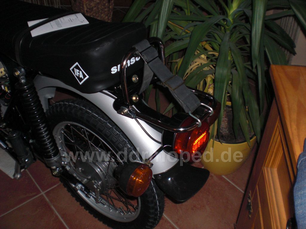 Habe meinen Gepäckträger montiert. Endlich kam der eine von zwei Chrombügeln vom Verchromer. Der senkrechte Bügel ist ein originales Lagerwareteil. Das Spannband auch. Somit besteht der Gepäckträger zu 100% aus DDR Teilenm und war, nebenbei gesagt, ein vielfaches teurer als "Nachbauschruuuuz".