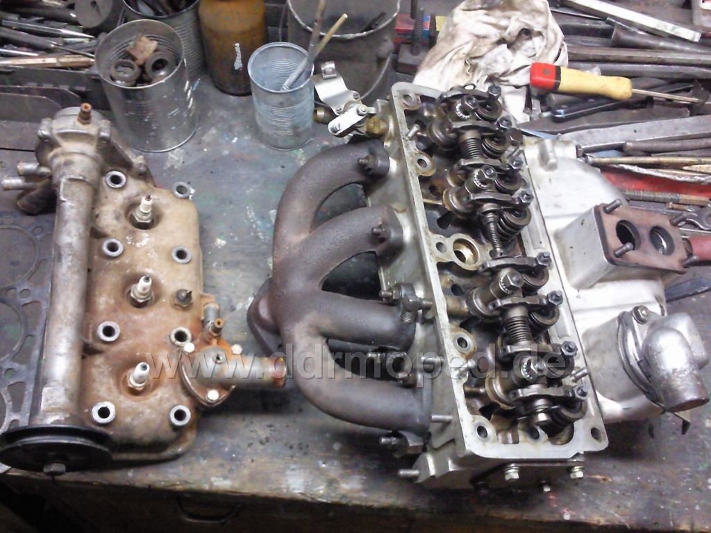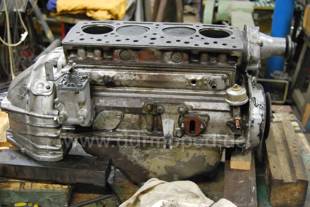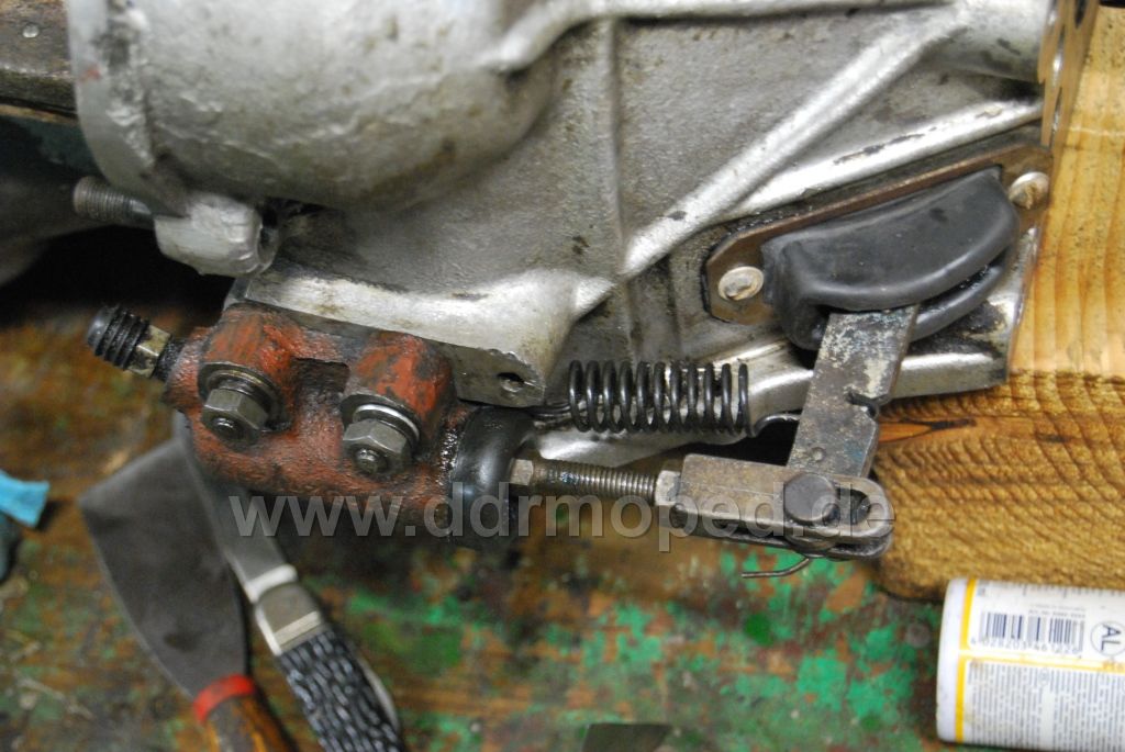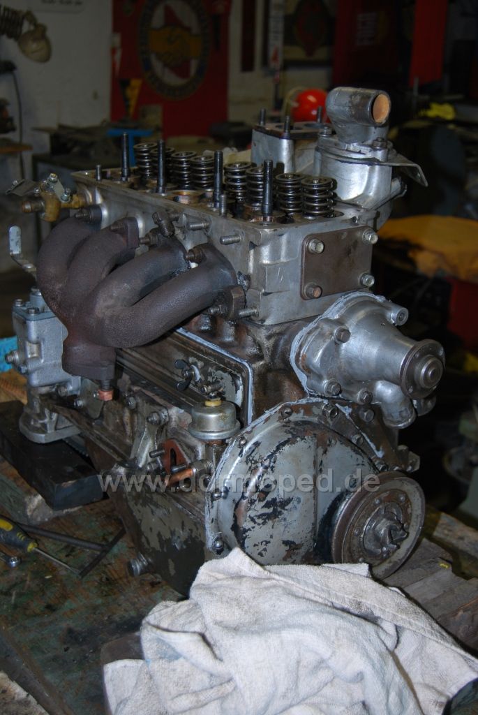 Das Getriebe konnte nach Überholung an den Motor angeflanscht werden, nachdem an diesem auch alle Arbeiten fertig waren (Ventile einstellen, Zündung einstellen, Lima neu lagern, neue Kohlen, usw.)