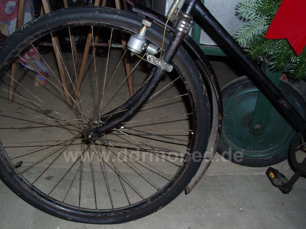 Schickes Rad. Ich würde es auf die Zeit 30er/frühe 40er schätzen. Dynamo, Rücklicht und Vorderbremse passen nicht. Eine der Felgen wird neu reingekommen sein, nehme an die Hintere. Ich hoffe für dich, dass es kein 26" Rad ist, bzw dass dann die Reifen noch gut sind.