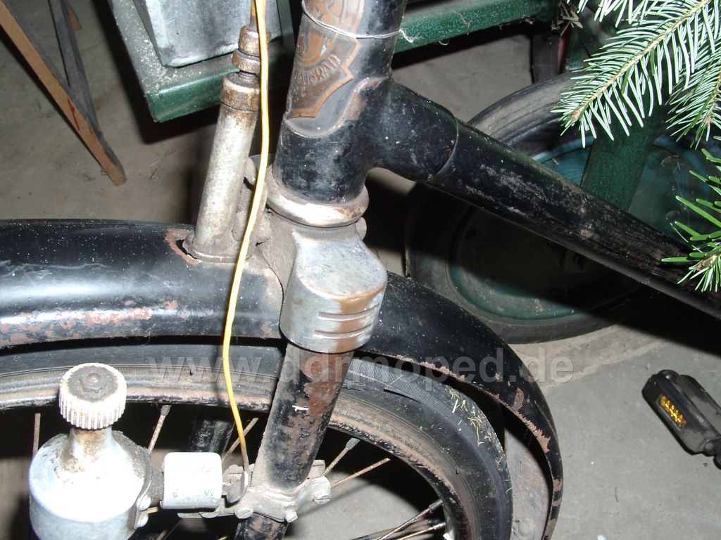 Was mich wundert ist, dass das Schild scheinbar überhaupt nicht zum Steuerkopf passt. Es liegt nicht auf und die obere Niete sitzt ja genau auf dem Muffenrand