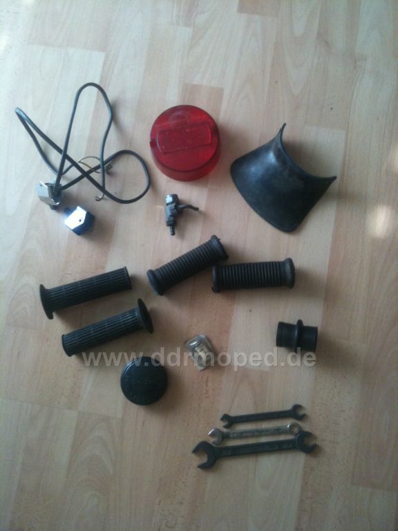 Eigentlich hatte ich ja auch vor, am Markt zu erscheinen, doch kurz nach meinem Aufbruch bekam ich auch schon von einem aufmerksamen Forumsmitglied (Danke nochmal  ) den Hinweis, dass sich die weite Anreise nicht lohnt. Kurzendschlossen umgedreht und da ich eh 3 Stunden frei bekpommen habe, auf nach Kemnitz, zum (angeblich) größten Zelttrödelmarkt. Umfang, Angebot und Menge etwa wie jedes Jahr. Mopedmäßig nur sehr wenig und auch alles Dinge, die man eh schon hat. Zwei kleine Mitbringsel hab ich dann aber doch noch mit heimgenommen...