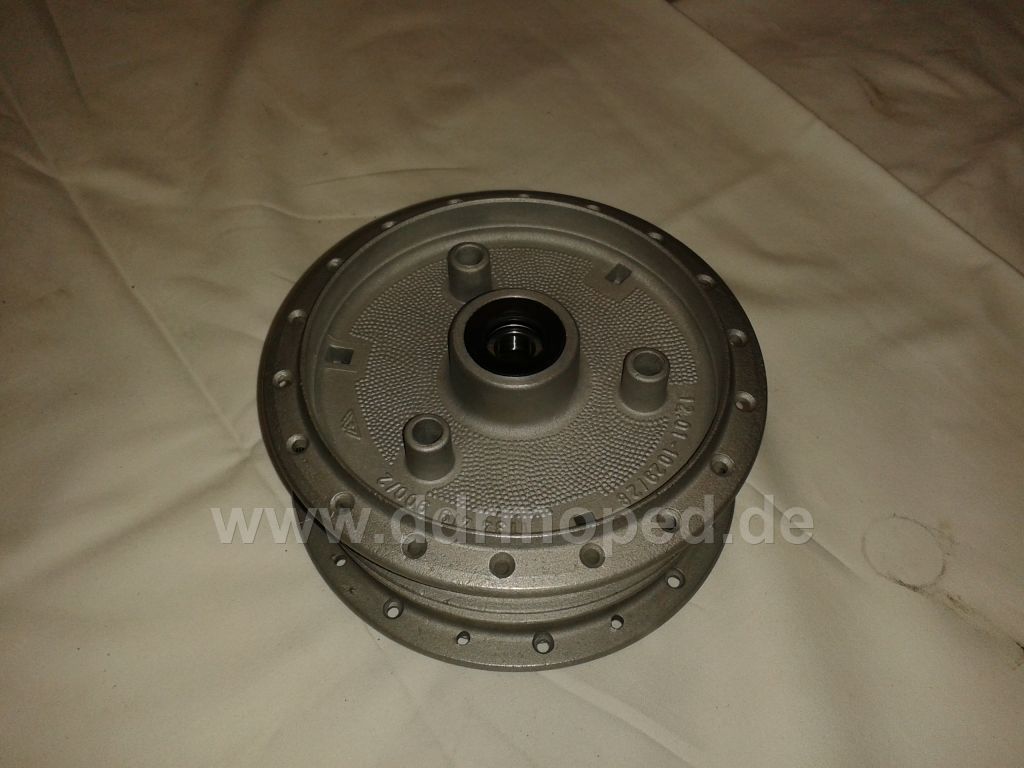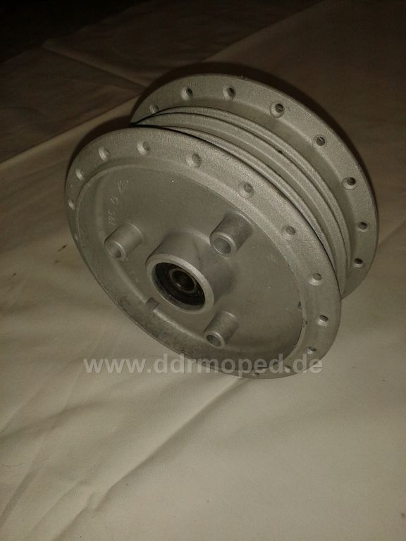 Und JA, ich könnte mich auch mit Messingbürste, Bindfaden, Bohrmaschine, Elsterglanz, ... hinstellen. Aber das dauert mir einfach zu lang. Ich lasse die Naben strahlen und gehe dann mit Ballistol und Schleifvlies (grau-ultrafine) als Finish drüber. Genauso habe ich das auch schon mit dem Kettenkasten, dem Distanzstück, ... gemacht. So sieht zum Schluss wenigstens alles einheitlich aus.