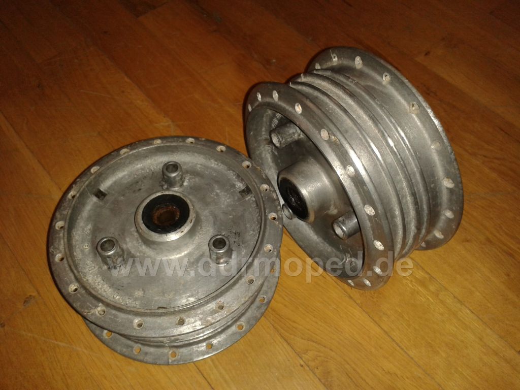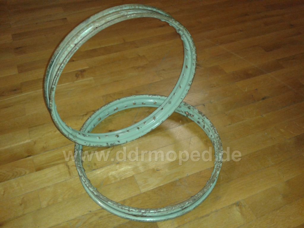Gestern habe ich auf dem Teilemarkt in Suhl einen schönen Satz patinierte Stahlfelgen geschossen und heute auch gleich mit dem Aufarbeiten begonnen. Jetzt gerade sind die Felgen entspeicht, gereinigt und grob poliert.