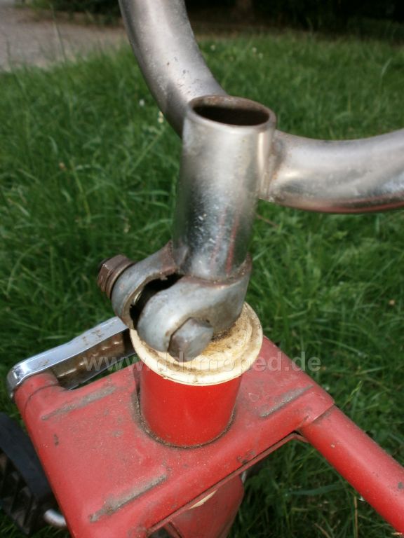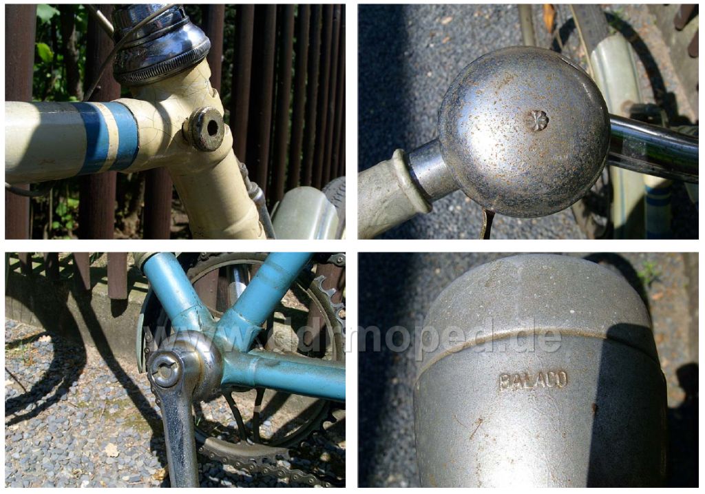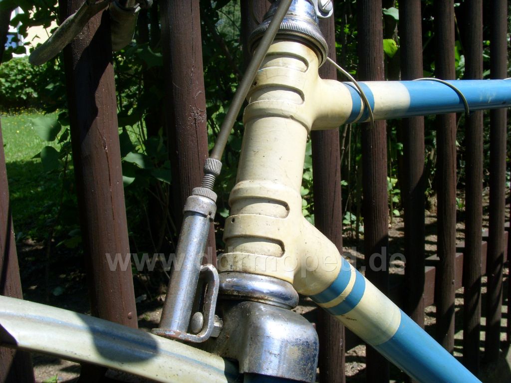 Problem: Fahrrad wurde vor vielen Jahren umlackiert und mit vielen DDR-Teilen ausgerüstet (Kurbelgarnitur, Kettenschutz, Lenker, Sicherungsmutter Steuersatz).
