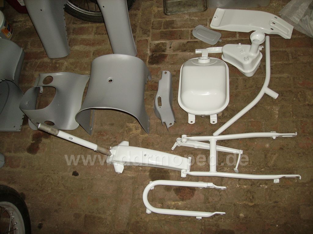 Aber etwas muss ich los werden: Mir als Lackierer tun immer die Augen weh, wenn ich Bilder mit frisch lackierten/gepulverten Teilen sehe, die ohne eine Unterlage (Decke, Folie, Pappe, ...) einfach so auf dem Boden liegen.