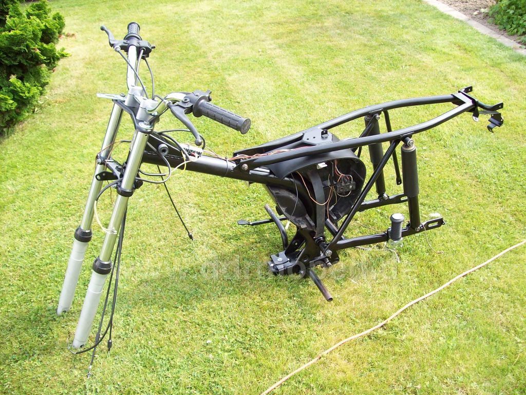 So heut wieder bisschen was gemacht ^^ Den Herzkasten, Soziusfußrasten sowie die Telegabel, Lenker und alle Bedienelemente montiert und noch die Elektrik verlegt