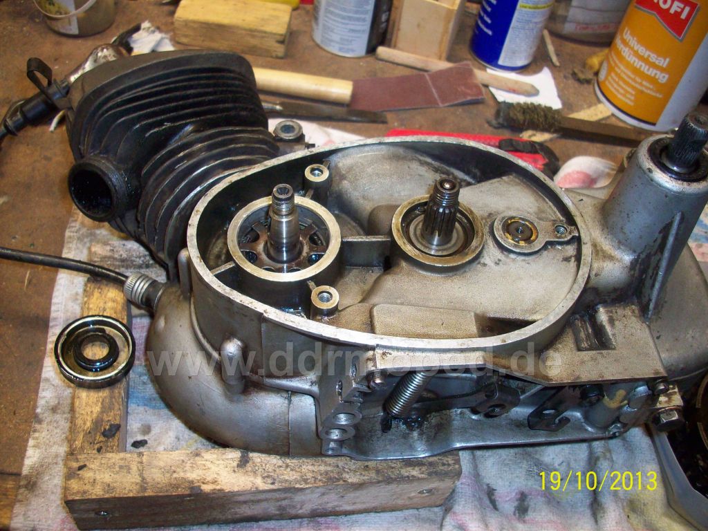 Ich würde empfehlen den Kupplungsdeckel wieder drauf zu machen. Dann 0,5 L Benzin in das Getriebe füllen (aber etwas unterstellen). Drehe den Motor ein paar mal durch, über Nacht einwirken lassen, nochmals ein paar mal durch drehen und die Brühe ablassen. Dann sollte es schon viel besser aussehen.
