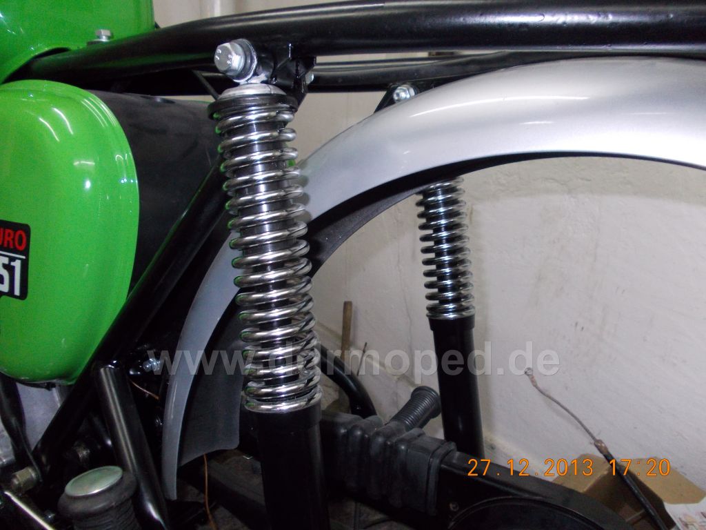 Beim rechten Seitendeckel gehört noch eine Druckscheibe unter die Schraube, schont den Lack und das Blech. Der rechte Schriftzug sieht mir arg schräg aus. Ansonsten schöne Arbeit