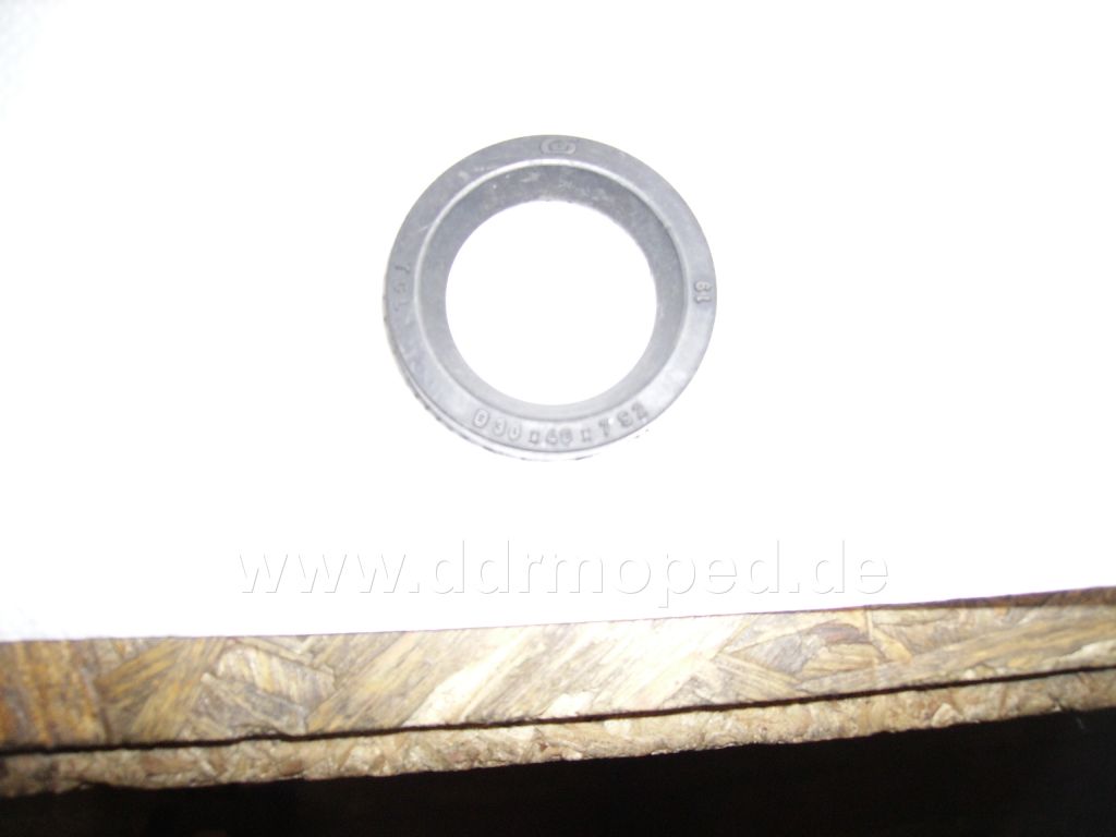 Ich habe nun doch die Telegabel komplett auseinandergeruppt und gleich die Simmerringe mit erneuert. Dabei habe ich leider festgestellt, dass in den Holmen die Dichtscheibe für die obere Federaufnahme fehlte. Ich nehme an, dass es sich dabei um dieses Teil hier handelt. Da ich aber heute Abend noch oder spätestens morgen die Telegabel schon wieder montieren muß, da das Moped vom Besitzer dringend gebraucht wird, will ich die Dichtungen schnell selber bauen, weil Onlinebestellung und Versand drei, vier Tage dauert und der 3. Oktober ja auch noch dazwischen ist. Kann mir jemand die genauen Maße dieser Dichtscheiben sagen, besonders die Stärke ? Und sind die Dichtscheiben aus Gummi, Kork oder Fiber? Danke!