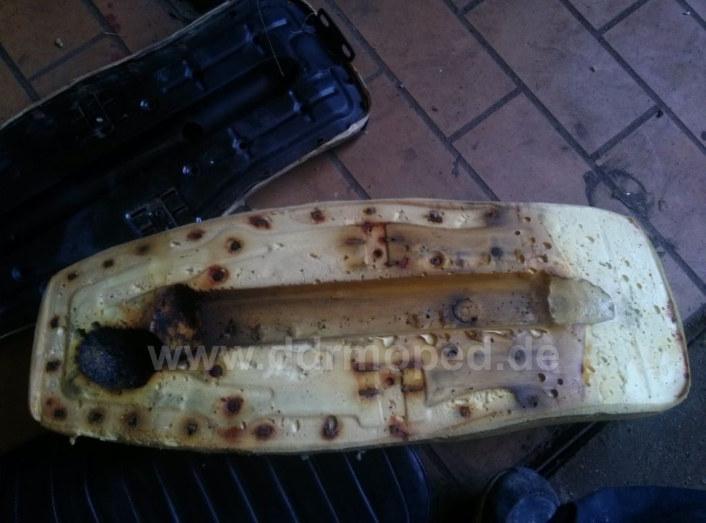 So musste das Sitzblech an einigen Stellen geschweißt und anschließend neu lackiert werden. Der Schaumstoff hatte Brandlöcher und musste ergänzt werden. Auch der Bezug hatte seine besten Tage hinter sich, sodass ich auch diesen ausgetauscht habe.