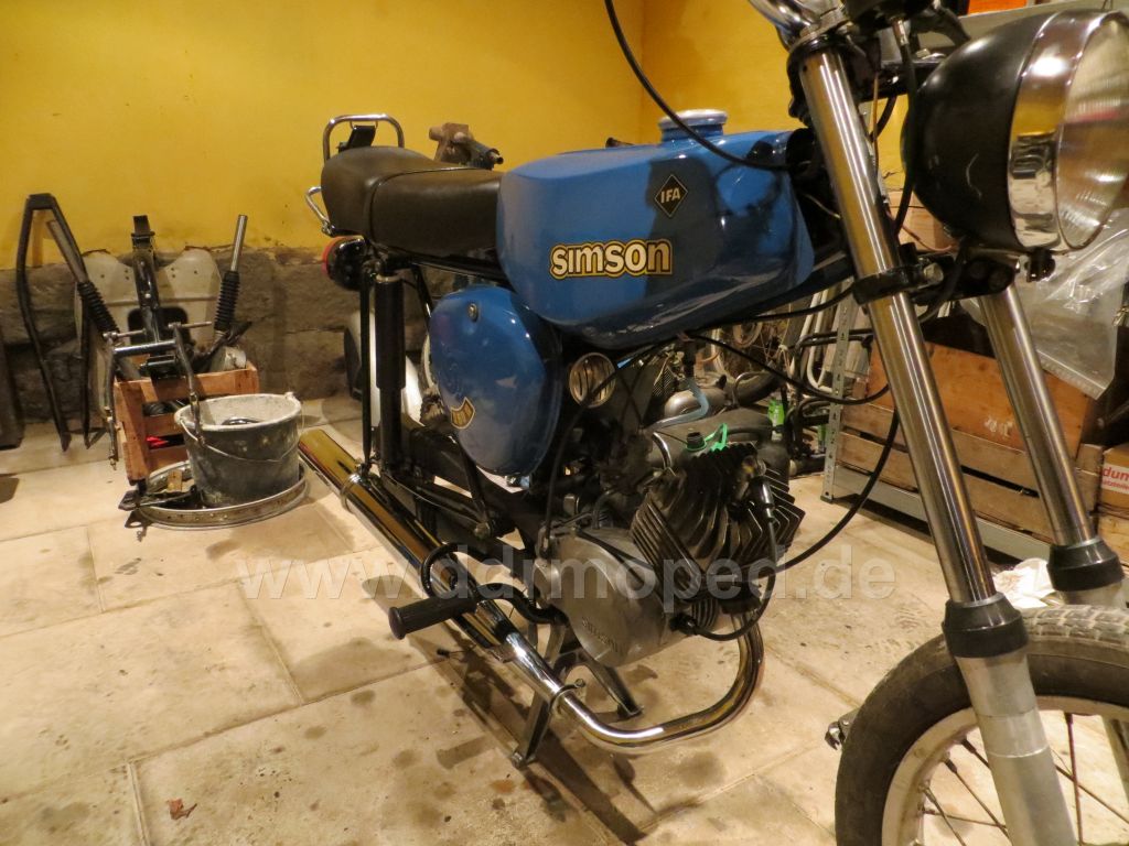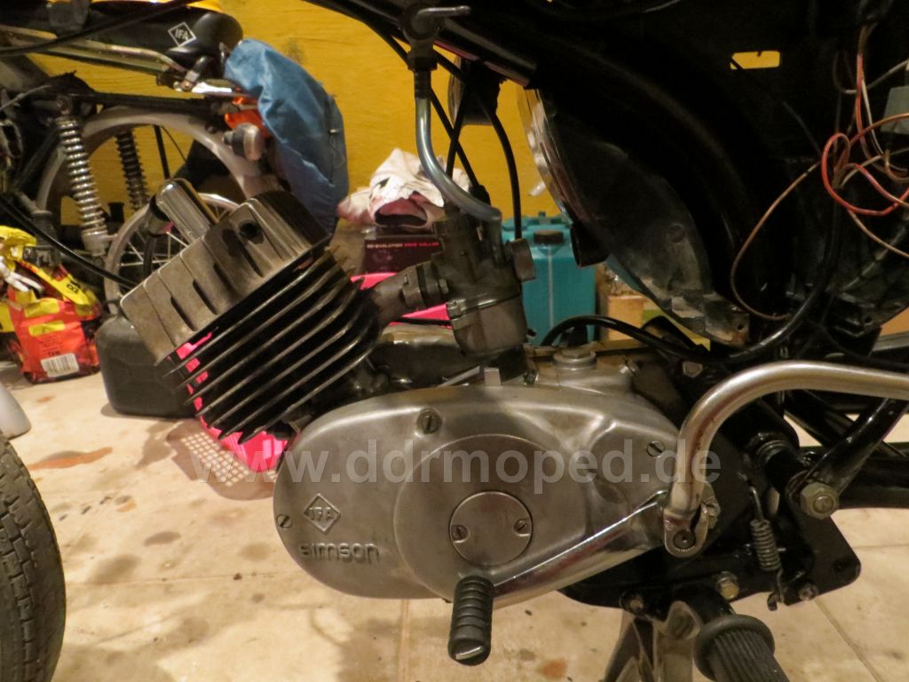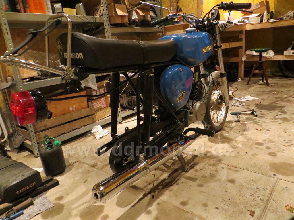 Gestern habe ich mich an die Seitendeckel gemacht. Und den Auspuff wieder angebaut, bis ich einen verwertbaren Originalen hab bleibt der erstmal dran. Eine passende Auspuffhaltestrebe bekomm ich demnächst auch noch.