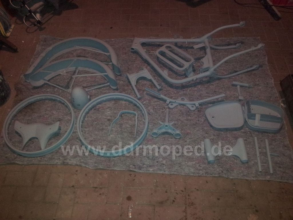 Neues von der Schrauberfront! Hab die letzten Tage mit dem Zusammenschrauben einer KR 51/1 von´nem Kumpel verbracht. Ist ja momentan wie´ne Art fremdgehen! Heute habe ich aber endlich die grundierten Teile vom Strahler geholt. Gute Arbeit. Günstig auch noch. Schaut selbst: