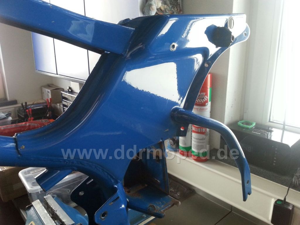 Hallo beisammen, lange hat es gedauert aber jetzt ist er endlich fertig der flugunfähige Sperber Der ursprüngliche Plan war ja ein Patinaaufbau, aber das vordere Schutzblech war im unteren Bereich ziemlich verbogen und der Lack abgeplatzt. Daher dachte ich über eine Teillackierung nach, da aber auch der hintere Kotflügel an einigen Stellen beschädigt war und ich ihn schweissen musste, lief es auf eine Komplettlackierung hinaus. Als Kompromiss habe ich nun alles lackieren lassen bis auf den Rahmen, da dieser einen wirklich erhaltenswerten Originallack hatte. Die Farbe wurde extra vom Doc passend angemischt. Aber ich lass jetzt einfach mal Bilder sprechen - das einzige was noch fehlt ist der Spiegel, da bin ich noch auf der Suche danach. Gruss Stefan