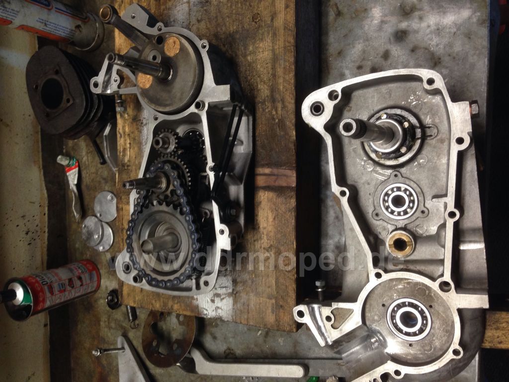 Wenn man das nicht macht hat man das Volumen des Kurbelgehäuses vergrößert. Dadurch verkleinert man aber den Unterdruck und somit die Einströmgeschwindigkeit des Gemisches. Den Füllungsgrad im KW Gehäuse muß man trotzdem verbessern und dazu muß man mit der Einlaßresonanz spielen damit mehr reingeht bei gleichem Volumen. Ich hoffe ich habe mich verständlich ausgedrückt