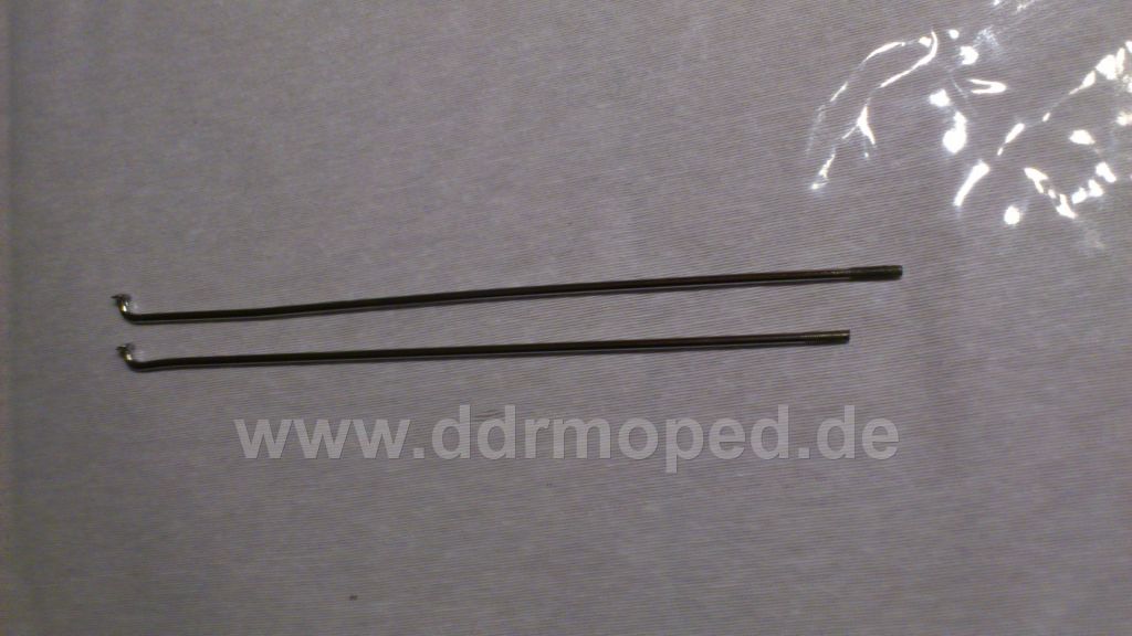 Die "olle Kamelle" mit gebrauchten Speichen kommt daher: In den Anfangsjahren des Forums hatten wir einen user "Mopedfahrer Gerd". Der betrieb in Mittweida ein Fahrradgeschäft und hatte unter seinen Bekannten auch den ehemaligen DDR-Radrennprofi Täve Schur. Von dem kommt der Spruch, der auch nachvollziehbar ist: Wenn eine Rad eingespeicht ist, werden die Speichen auf Zug beansprucht/gedehnt. Ob eine Speiche die korrekte Spannung hat, kriegt der Profi mit einem Schnipsen der Finger dagegen raus. Die korrekte Speiche "klingt hell". Ähnlich, wie bei einer Gitarrensaite. Im Betrieb wird eine Speiche nach allen möglichen Richtungen belastet: Zug- Druck- und Scherkräfte wirken. Wenn man eine alte Speiche also wieder einbaut, muss man sie über ihre ursprüngliche Dehnungsfähigkeit anziehn, sonst "schlabbert" sie. Oberhalb dieser "Dehnungsgrenze" kann sie aber die auf sie wirkenden Kräfte nicht mehr korrekt aufnehmen. Ein Materialprofi könnte das sicher besser erklären.  Ob das nun für den Bereich Oldtimermoped sooo relevant ist, wird jeder selber entscheiden müssen. Richtig korrekt ist es jedenfalls nicht.