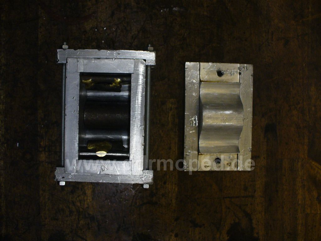 - Mein Valkaniseur braucht immer ein halbes Jahr, bis ein Teil fertig ist. Und dann kann ich nicht beim Vulkanisieren dabei sein. Die Form hat vom vielen Klopfen schon etwas gelitten. Da suche ich noch nach einer besseren Lösung.