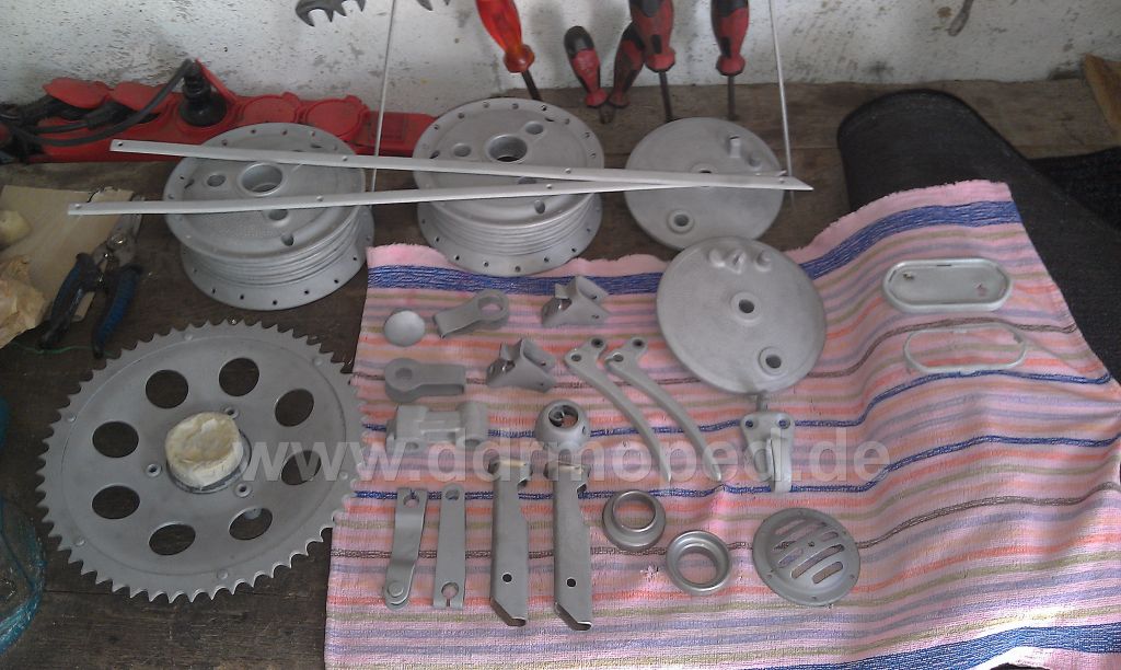 Die meisten Teile schon mal Sandgestrahlt. Werden alle demnächst noch Glasperlengestrahlt