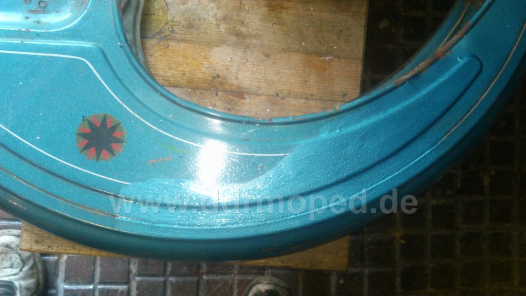 Heute habe ich das Wetter genutzt und dank der superschnellen Lieferung vom Farbendoc konnte ich alle Lackierarbeiten erledigen. Hier der Federkasten vorher: