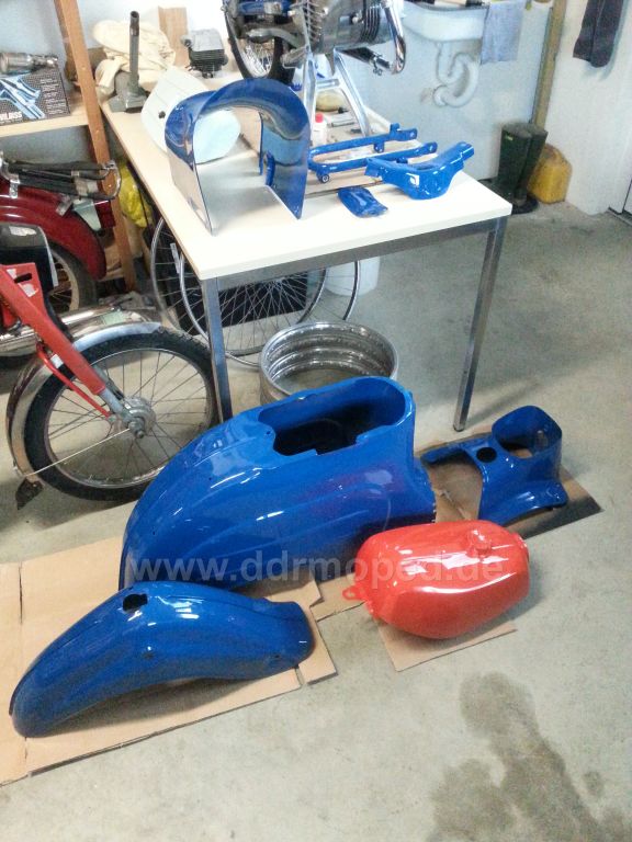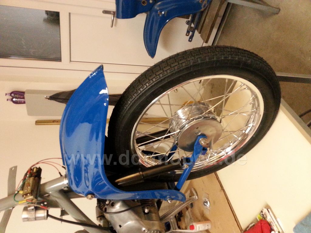 Über Ostern hab ich jetzt die Räder fertig zentriert und auch gleich die neuen Reifen aufgezogen (Heidenau K30). Außerdem noch den Tank entrostet und versiegelt.