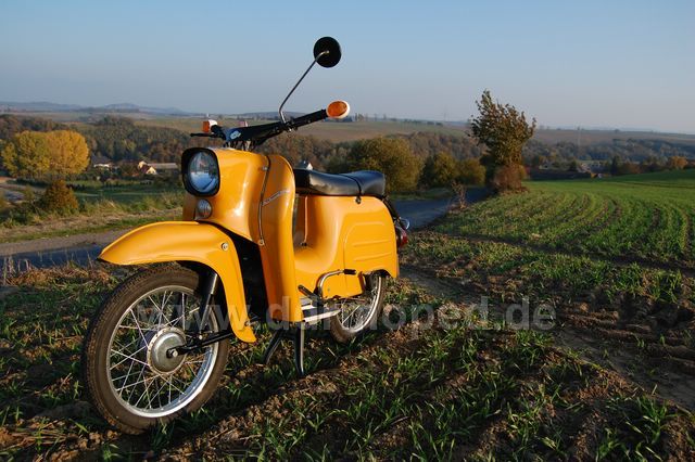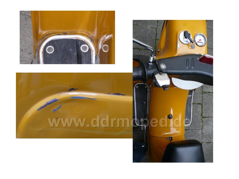 Mädels  mal ganz ruhig. Ich lese von einer gelben Schwalbe (mit Foto... und die ist wirklich gelb) von bibergelb bis biberbraun. Dann kommt der noch *vorsichtshalbereinöl* mit "Narzissengelb"(nimms nicht übel) Es gibt dutzende Pubikationen, wo man die damaligen Farbtöne(sodenn man diese Publikationen alle hat) zuordnen kann. Gelb ist gelb und wird es auch bleiben. Die Sahara als Wüste ist gelb. Biberbraun (woher auch immer der Biber kommt) ist die braune Schwalbe. Es wird irgendwann(und das ist jetzt mal aus dem Bauch raus gesprochen) eine Bestellrubrik geben, wo sich der billardgrüne S51-User kann seinen Lackstift oder die Spraypulle oder auch den Liter Farbe in dem richtigen Farbton bestellen. Nur hier!!! Und nur hier Original!!! Und es wird auch die alten Farben geben wie lindgrün (Sr1) oder das bordeauxrot des Stares/Spatzes....habt Geduld, denn es ist wirklich ein Haufen Arbeit!! Aber es wird zu 100% Original! Das garantiere ich!!
