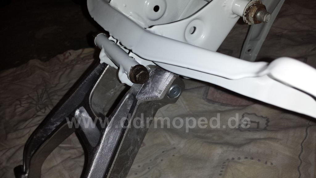 ich kann zwar schweißen, nur so ohne jahrelange Übung am Rahmen und dünnem Blech... lass ich lieber. Aber es ist so geschehen: Ständerlager und Rohr für Bremsgestänge wurde von der Werkstatt neu angefertigt, eben aus Rohr und Blech, und angeschweißt.
